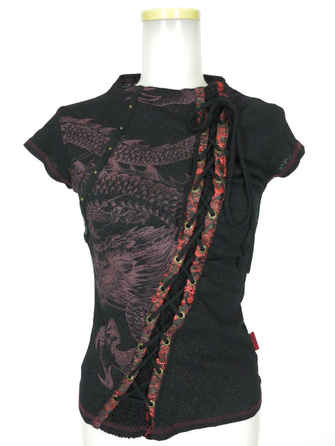 - Ozz On 龍プリント編み上げ付き半袖カットソー / オッズオン [B71147]