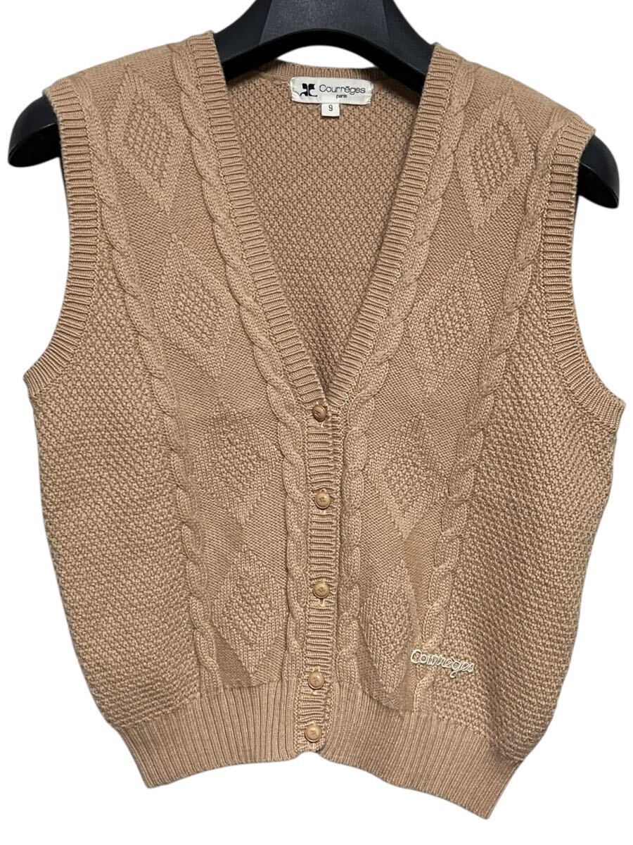 - 匿名発送 美品 クレージュ ケーブルニットベスト ロゴ刺繍 ロゴボタン M