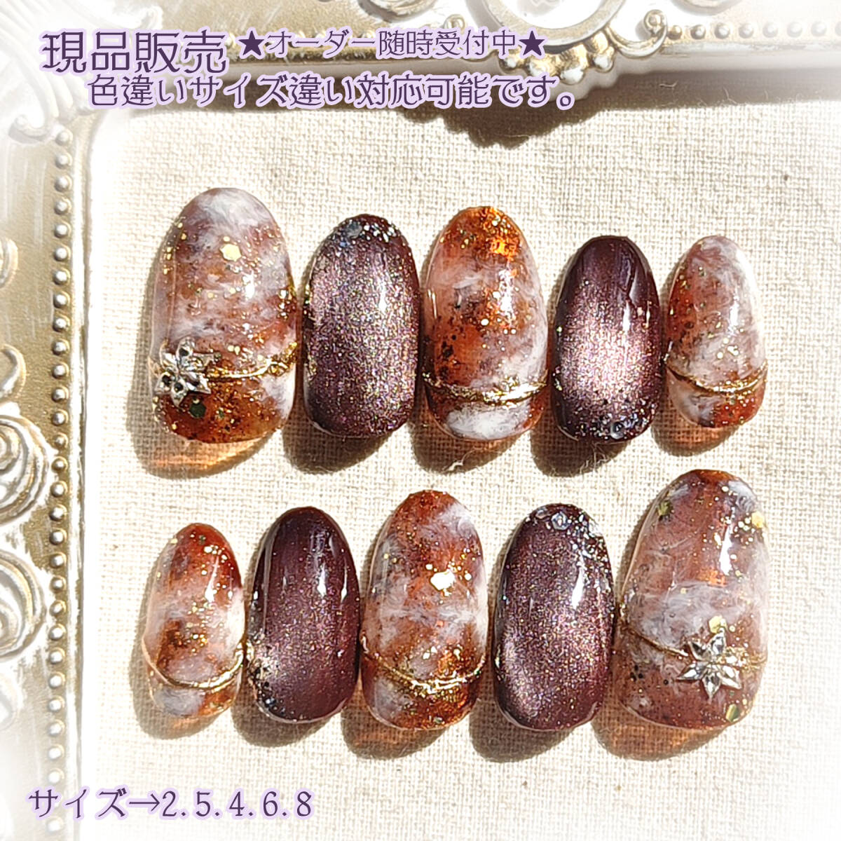 - ★現品★ネイルチップ ジェルネイル 秋ネイル ニュアンス 219