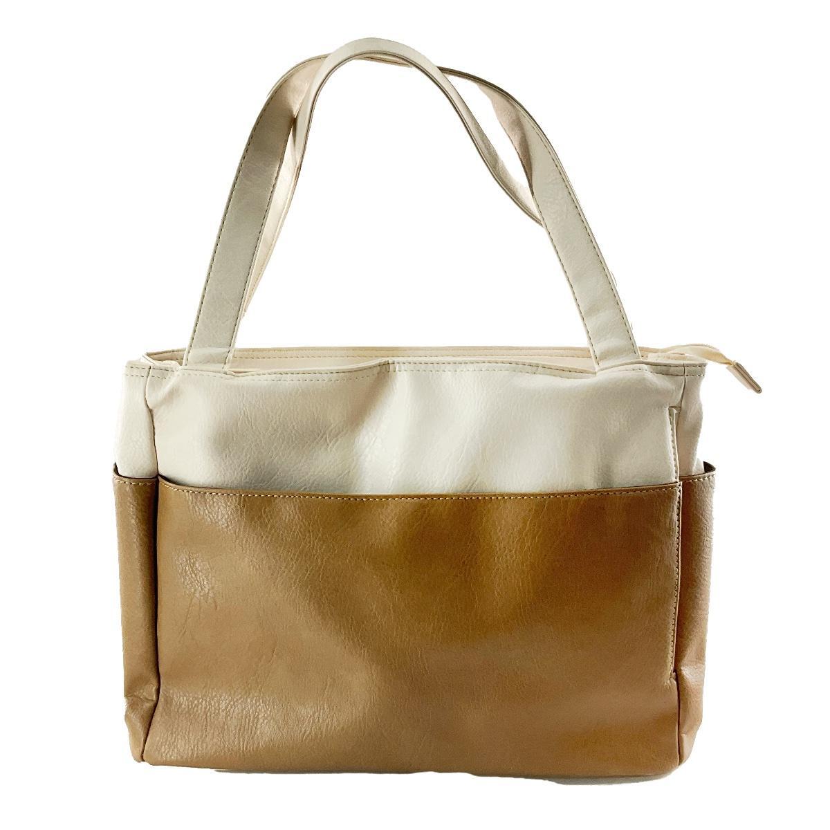- 訳あり 10ポケット多収納トートバッグ A4対応 アイボリーxオーク