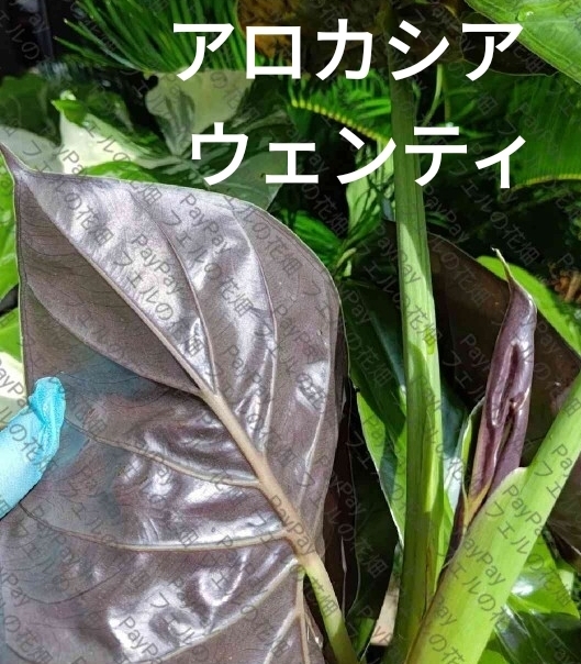 - アロカシア ウェンティ葉裏が光沢茶黒で魅力的 苗 ポット苗 葉裏 スモーキー色のアロカシア