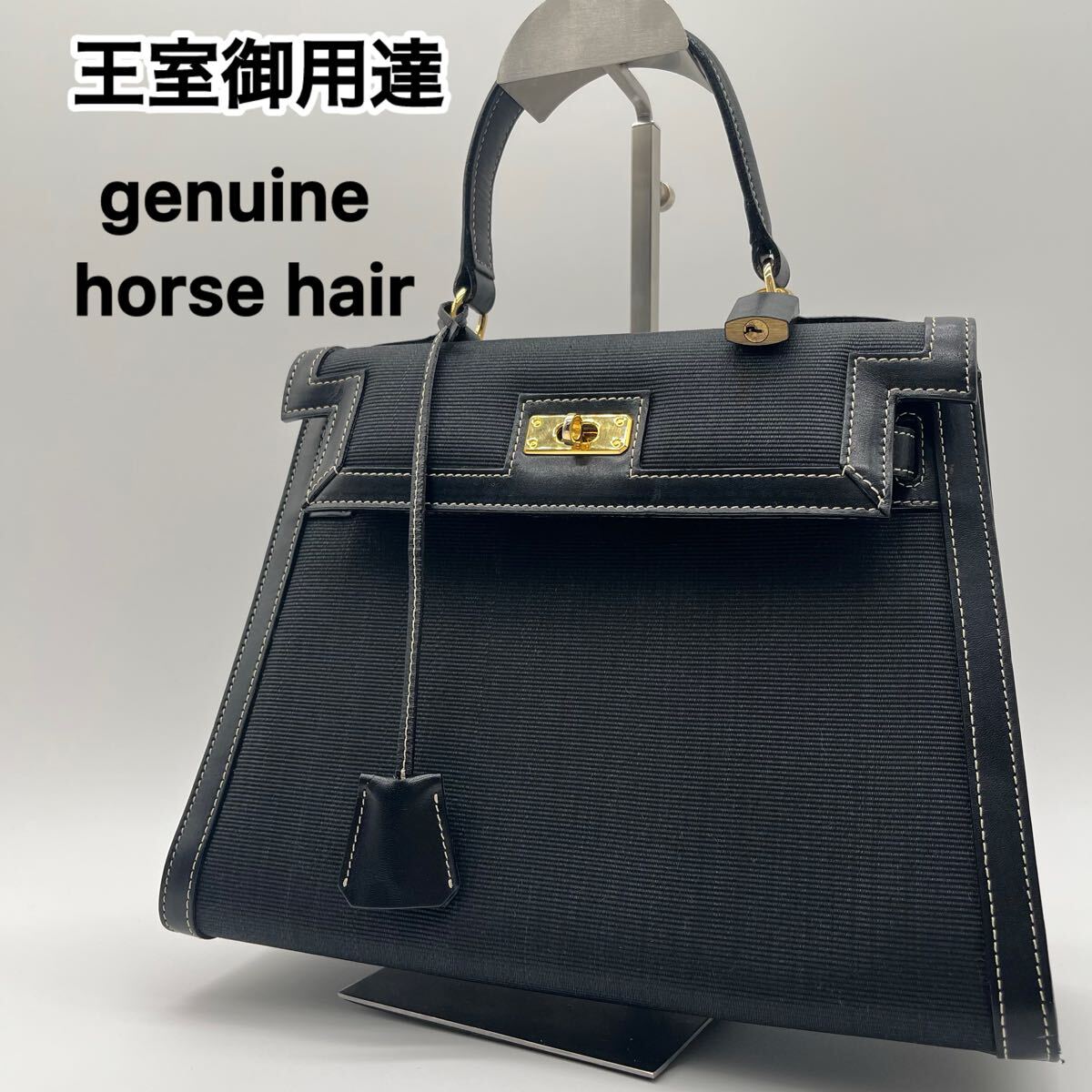 > 王室御用達■genuine horse hair 本革 馬毛 ハンドバッグ 黒 ブラック ゴールド金具 ホースヘア 馬毛 フォーマル ヴィンテージ レディース
