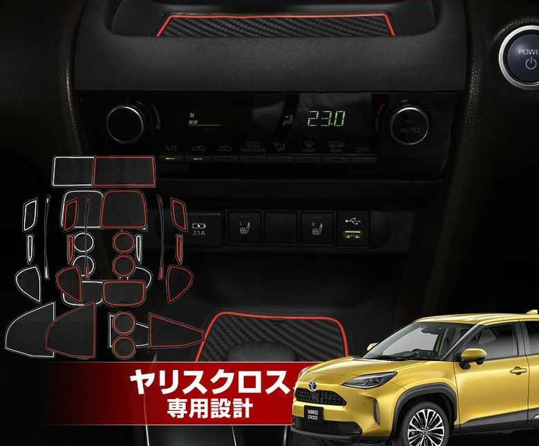 - 【 アウトレット 】 ヤリスクロス ドリンクホルダー他 ラバーマット 17P レッド