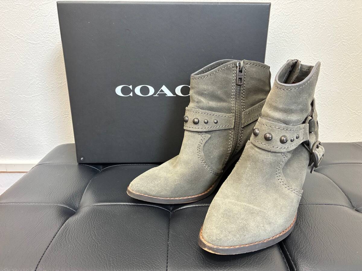 > ★☆ COACH コーチ ショートブーツ スエード グレー色 サイドジップ 37.5cm 日本サイズ 24.5㎝ ヒール8.5㎝ レディース 靴 ★☆№42