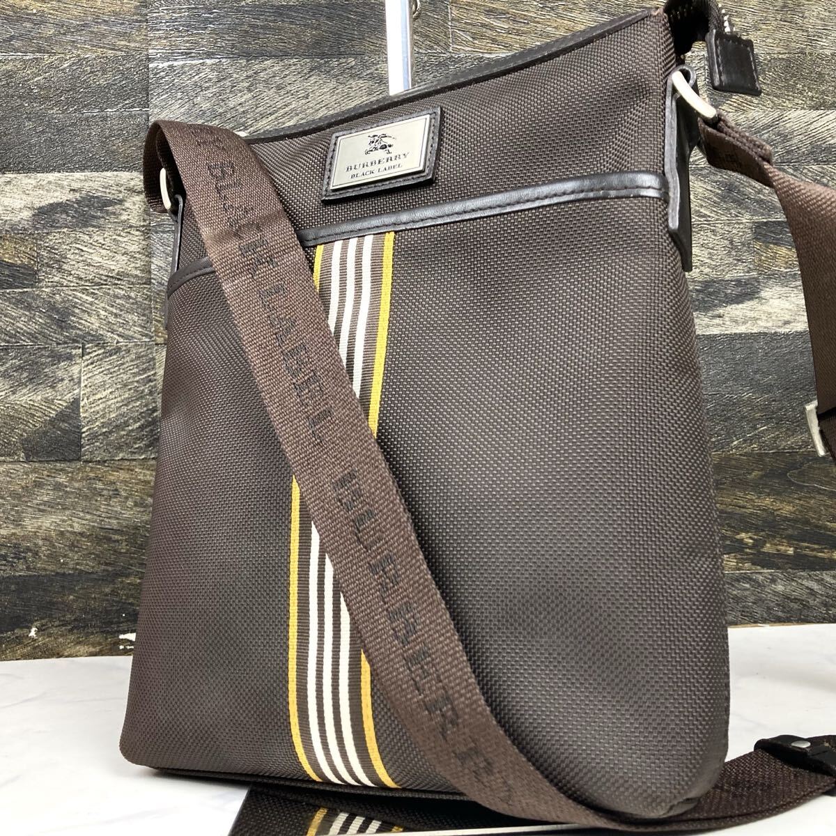 > 極美品 廃盤品 BURBERRY BLACK LABEL バーバリーブラックレーベル ショルダーバッグ サコッシュ キャンバス レザー ロゴプレート ブラウン