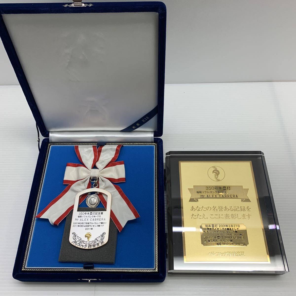 > H-4325 福岡ソフトバンクホークス時代 アレックス カブレラさん 350号本塁打 記念盾メダル Alex Cabrera 西武ライオンズ 純銀 k18 本人贈呈