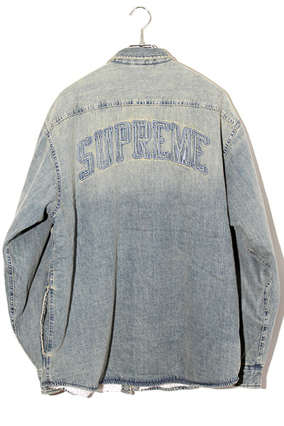 - 24FW Supreme シュプリーム Faux Shearling Lined Work Shirt アップリケ アーチロゴ ボア デニムシャツ L Washed Indigo Denim ウォッシュ
