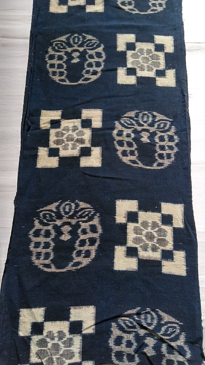 - 布地 古布 生地 レトロ 木綿 絵絣 170cm×34cm 藍色 リメイク