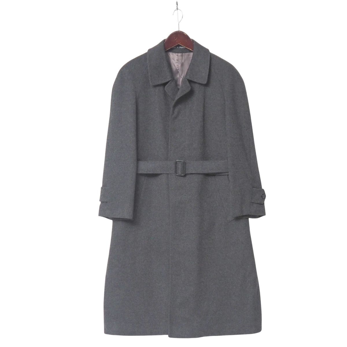 > MH6588◎イングランド製 AUSTIN ARNOLD オースティン アーノルド 総カシミヤ メルトン ベルト付 比翼仕立て ステンカラーコート グレー系 L