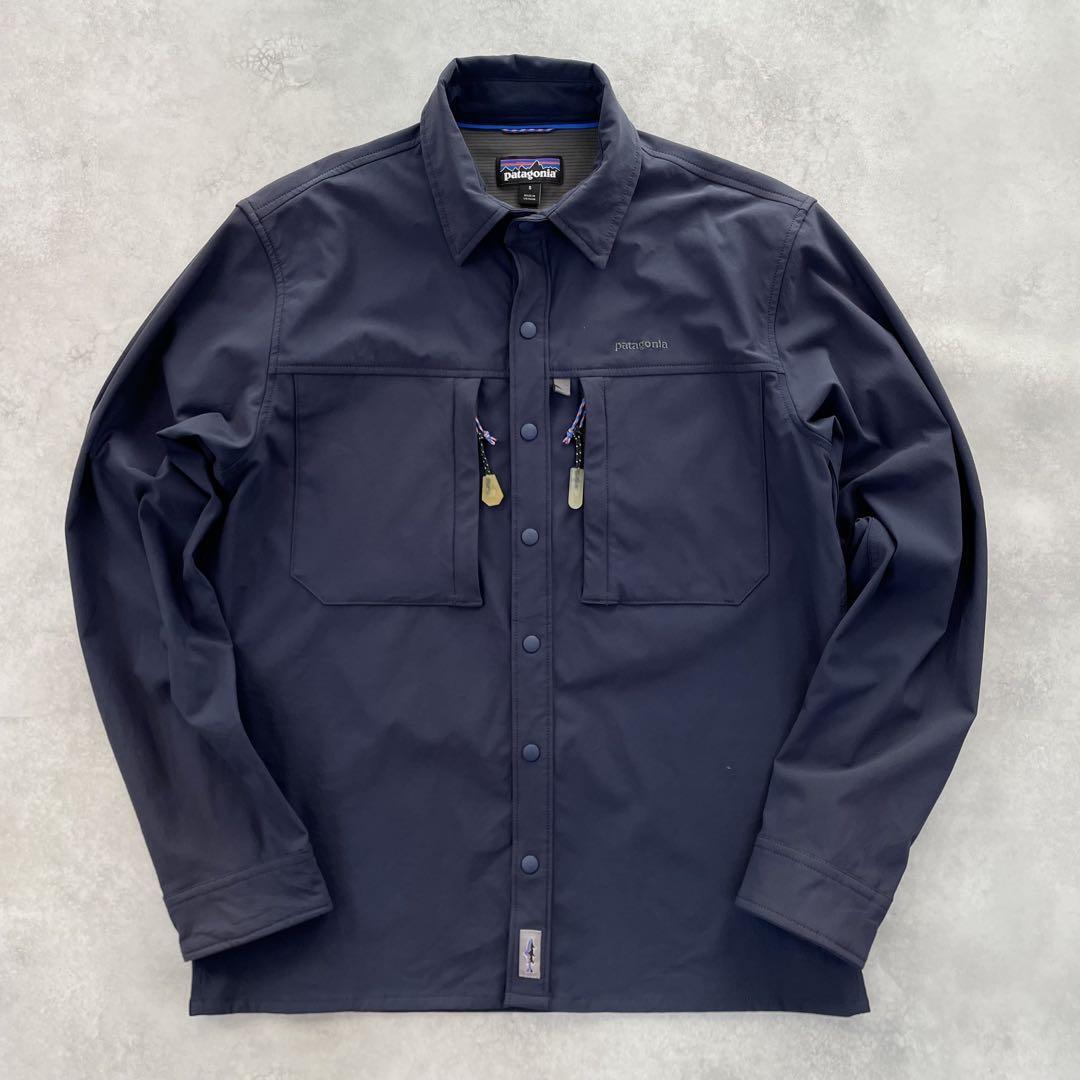 - 極美品 廃盤品 patagonia パタゴニア スナップドライシャツ 機能性シャツジャケットフィッツロイトラウト 紺ネイビー 52765FA19