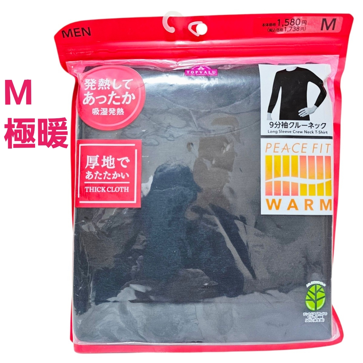 - 新品 イオン AEON 発熱 極暖 M クルーネック 9分袖 ブラック PEACEFIT WARM メンズ Y67