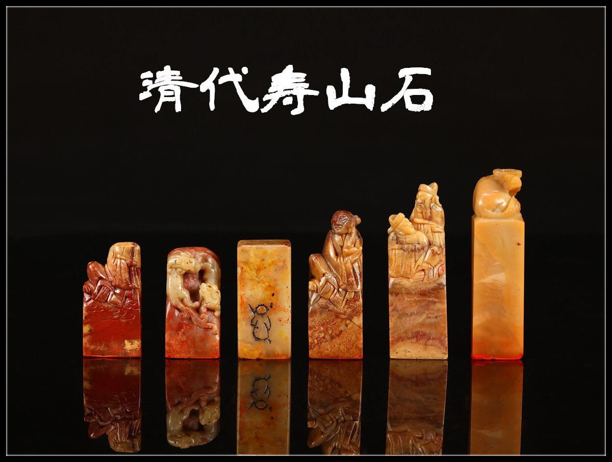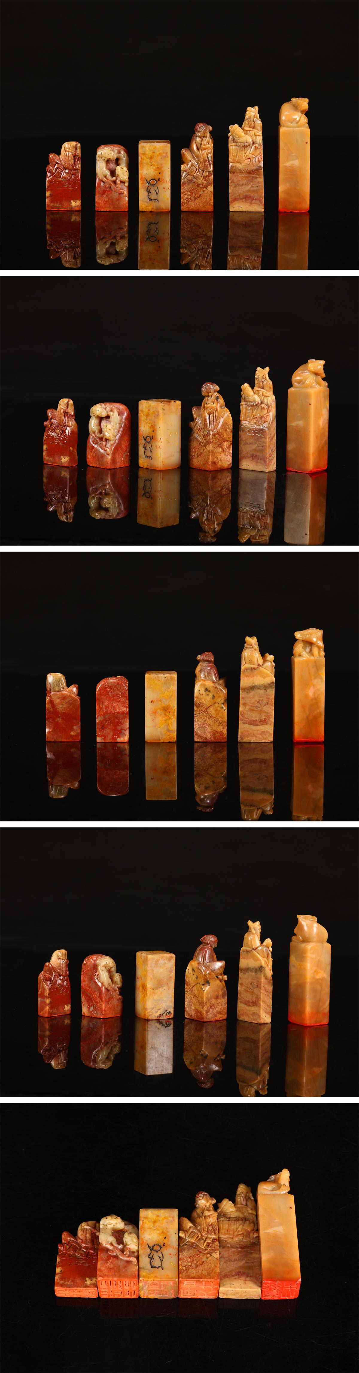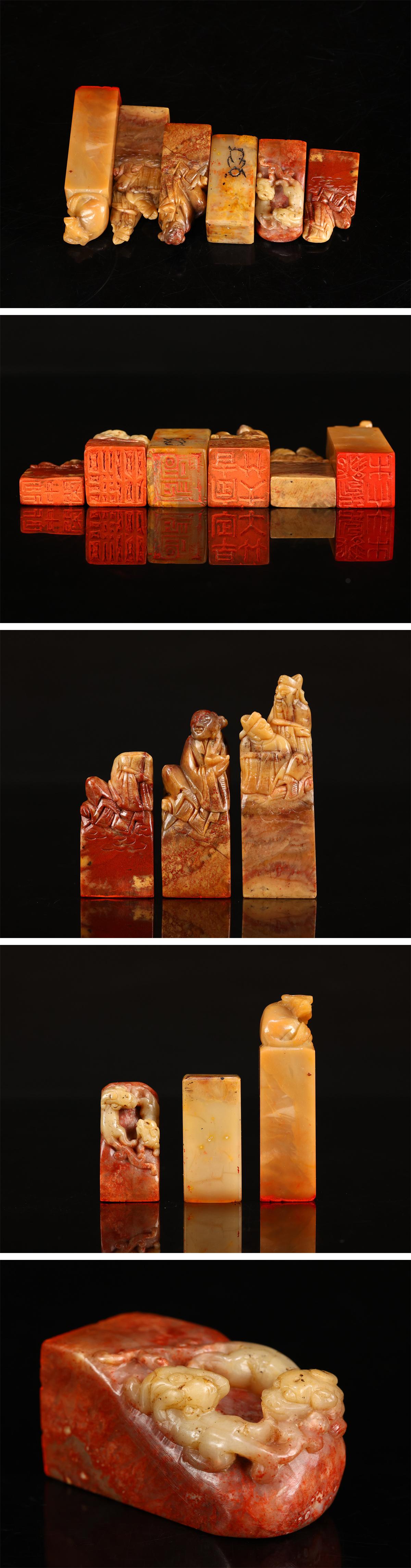 【吉】IB254 唐物 【清代寿山石】 田黄石 印材 印章 6点 一括出品 重238g拍卖