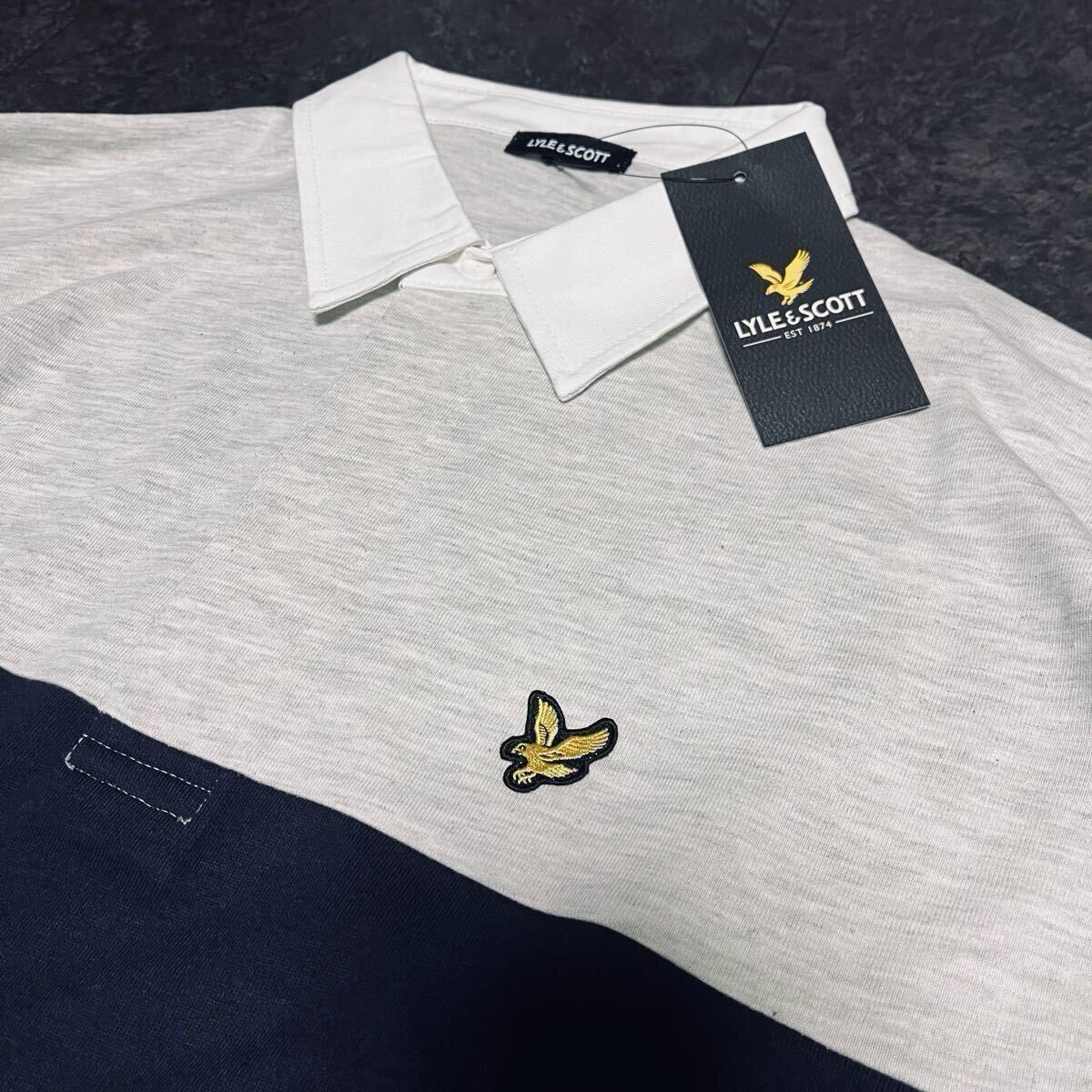 > Mサイズ 送料無料 ライルアンドスコット 長袖 ポロシャツ メンズ 新品 ワンポイント ワッペン 春秋 ストレッチ グレー 灰 ネイビー 紺