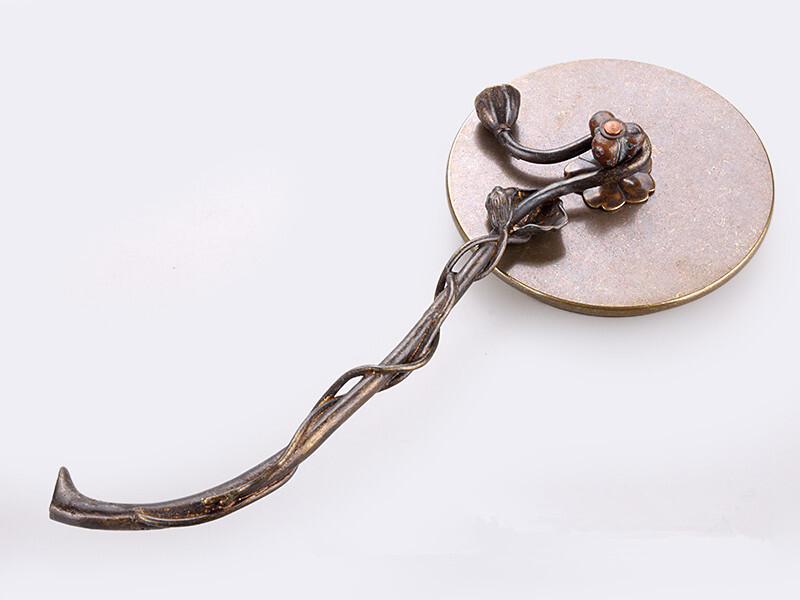 - 煎茶道具 金工銅造蓋摘み 蓮根 細密彫刻 古民具 置物 古美術 総長18.5cm