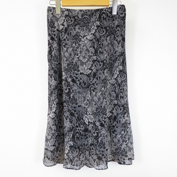 - #a ローラアシュレイ LAURAASHLEY スカート 9 黒 グレー系 レース柄 花柄 総柄 シフォン タグ付き 美品 レディース [941251] k01