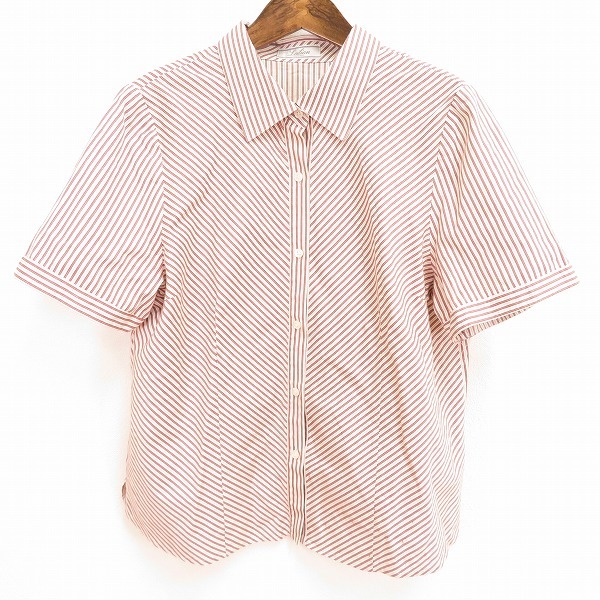 > #s レリアン Leilian シャツ ブラウス 13+ 大きいサイズ 赤 白 カーキ ストライプ ボーダー 半袖 日本製 レディース 920092 k01