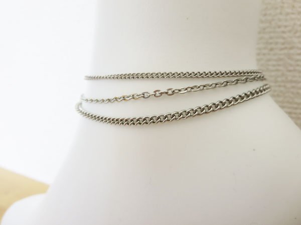 - 【大きめ】3連ステンレスチェーンアンクレット 全長約 30cm(26cm+4cmアジャスター) カーネリアンFN82