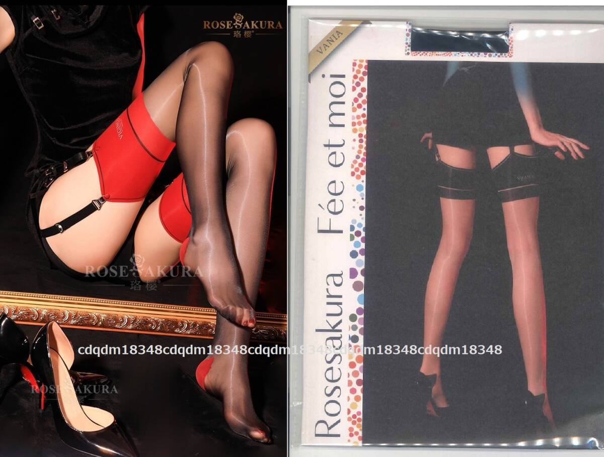 - ROSESAKURA/7250 黒赤レトロ ロゴ無し FFSデザイン 足型あり ガーターストッキング