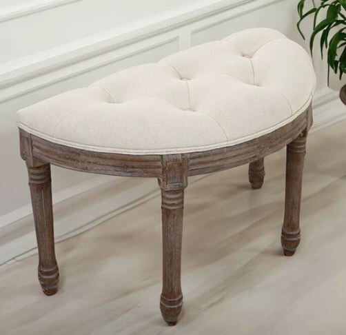 - 輸入家具 スツール 半円形 リネンベージュ クラシック リビングスタジオ 直輸入 イタリアン シャビー アンティーク 17717ST-LB 送料無料