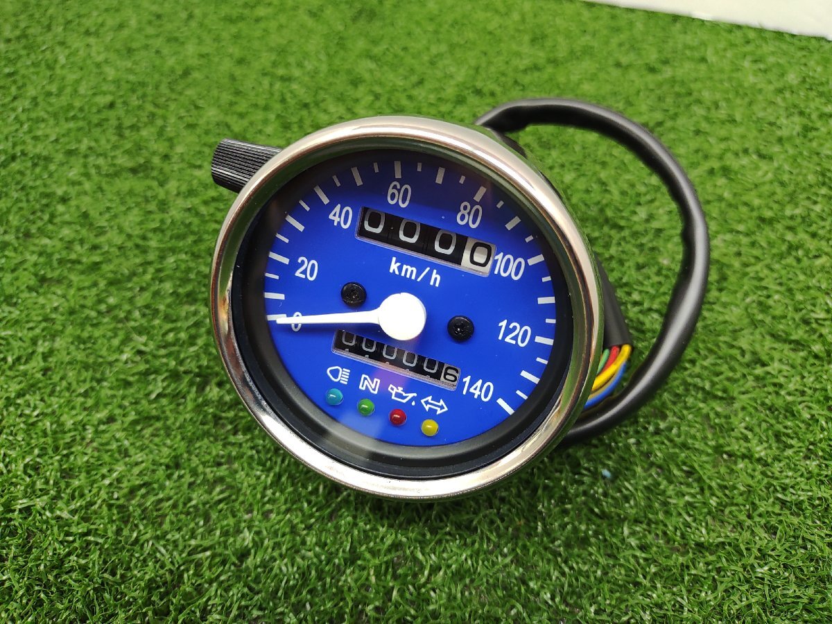 - ★未使用品★バイク用 140km/h 機械式 LED スピードメーター 60mm 60ミリ ブルー 青【他商品と同梱歓迎】