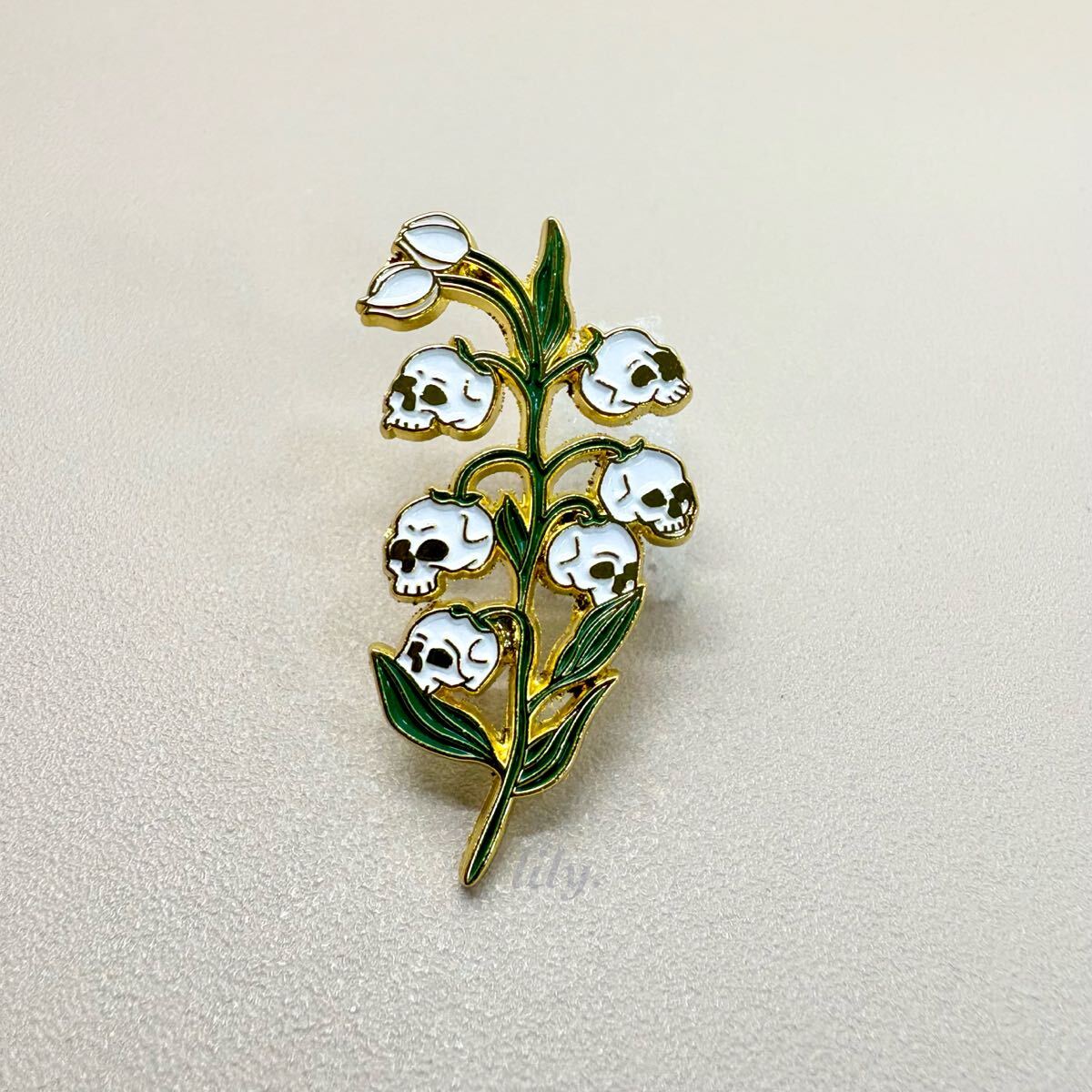 - 【ピンバッジ】ドクロの花 白花 骸骨 スカル 植物 ホラー