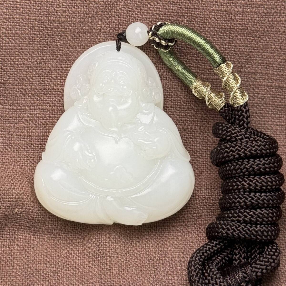 - ▽鴻▽ 清朝時代 和田玉 白玉彫 財神掛件 時代物 中国古美術 骨董品