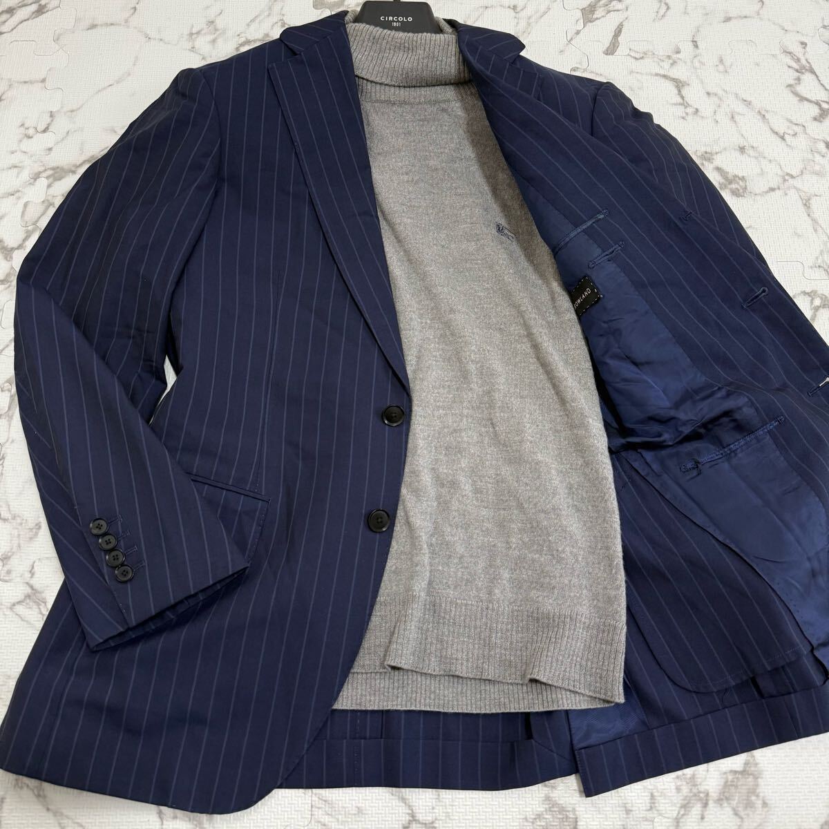 - 最高級 トゥモローランド TOMORROWLAND PIエルメネジルドゼニア Ermenegildo Zegna テーラードジャケット ネイビー 2B ストライプ 46