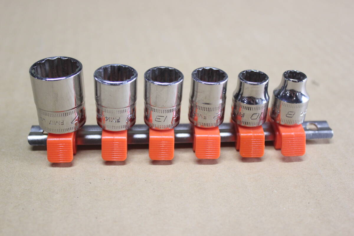 - スナップオン シャローソケット 差し込み角3/8 9.5ミリ 12角 6個セット レール付き 美品