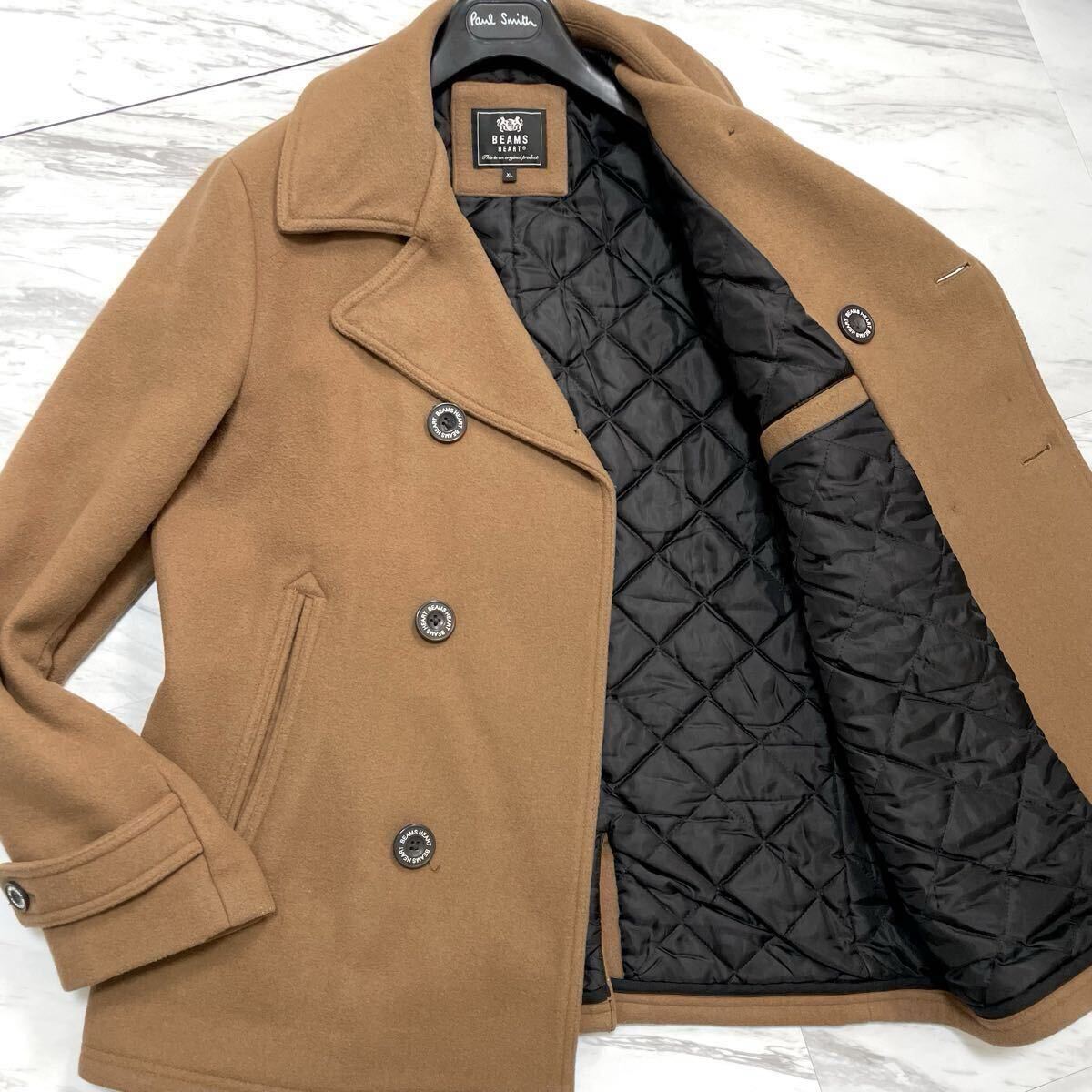 > 美品/超希少XL●ビームスハート BEAMS HEART ピーコート ジャケット 裏地キルティング 中綿 メルトンウール ベージュ メンズ 極暖 秋冬