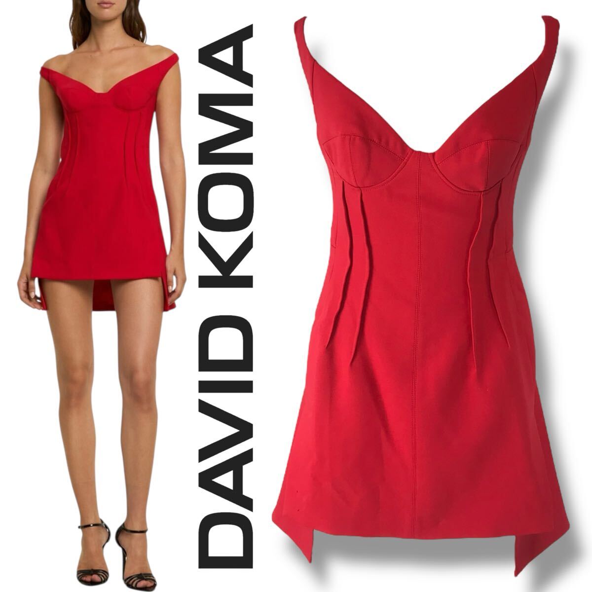 > d176 未使用 DAVID KOMA デヴィッド コーマ ノースリーブ ワンピース フォーマル ドレス レッド サイズ8 レディース 正規品