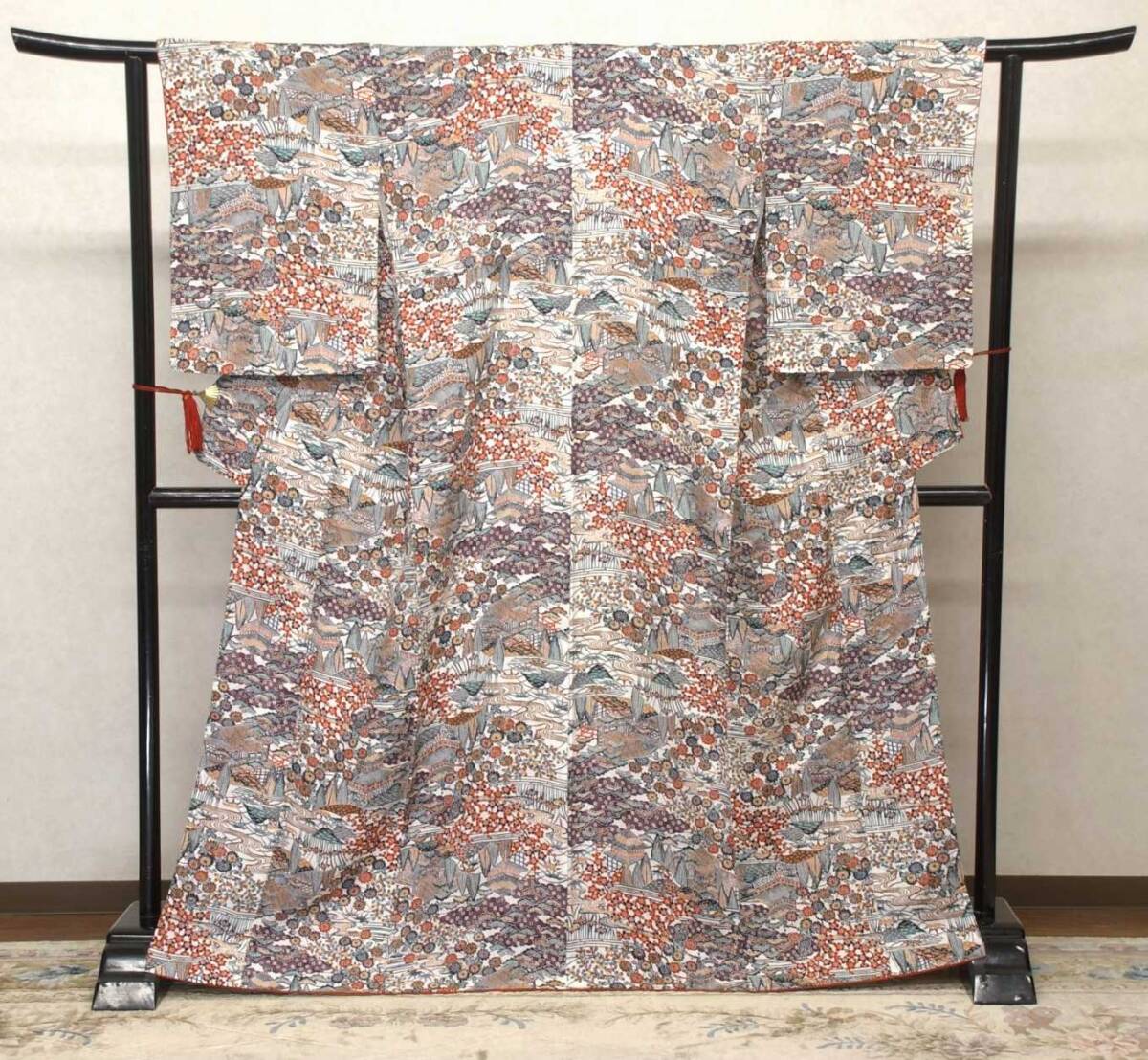 - ☆小紋☆白地 型染 茶屋辻文様 正絹 裄65cm☆キレイ