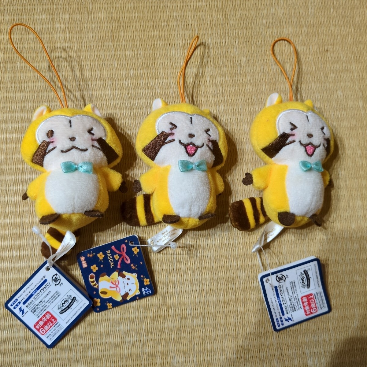- 【美品】 あらいぐまラスカル ぬいぐるみ マスコット 3個セット