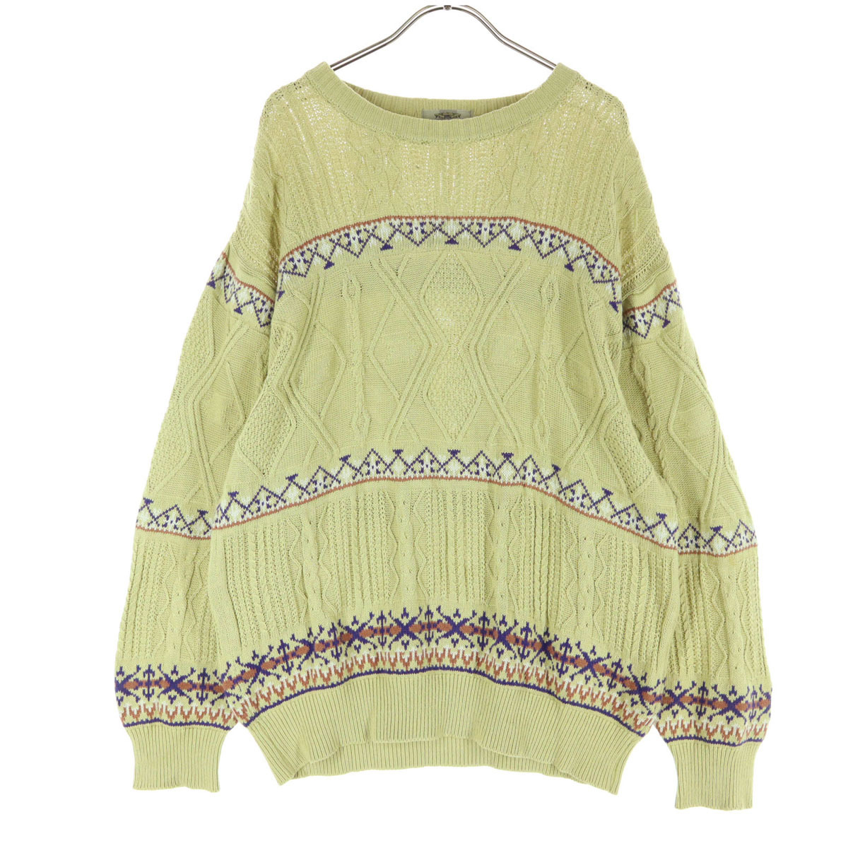 VULGARIS ブルガリス 日本製 総柄 長袖 セーター L ベージュ ニット メンズ拍卖