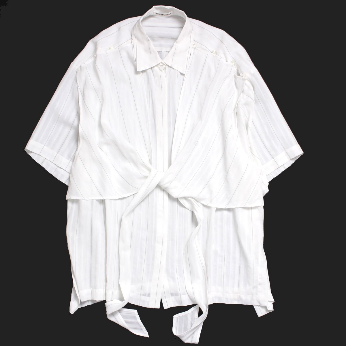 > 22SS rito structure カシュクールストライプシャツ 定価39,600円 size1 ホワイト 077R22S021B リト ストラクチャー シャツ ブラウス