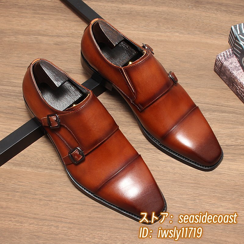 > 入手困難◆ダブルモンクストラップ 本革 レザーシューズ 職人手塗り上げ ビジネスシューズ メンズ 牛革 紳士靴 革靴 新品 ブラウン 27.0cm