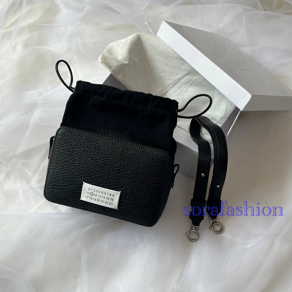 - Maison Margiela レディースショルダーバッグ ポシェット 巾着袋 斜め掛け ハンドバッグ 鞄 本革 ブラック 小さめ バッグ