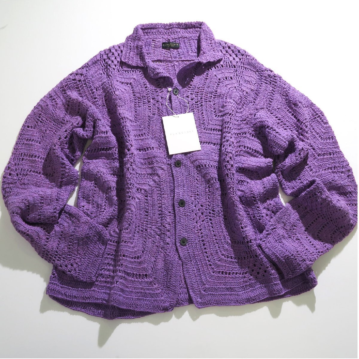 > 25ss【新品・定価33,000円】F-LAGSTUF-F SQUARE MESH L/S SWEATER sizeM FS1671 PURPLE フラグスタフ カーディガン FLAGSTUFF