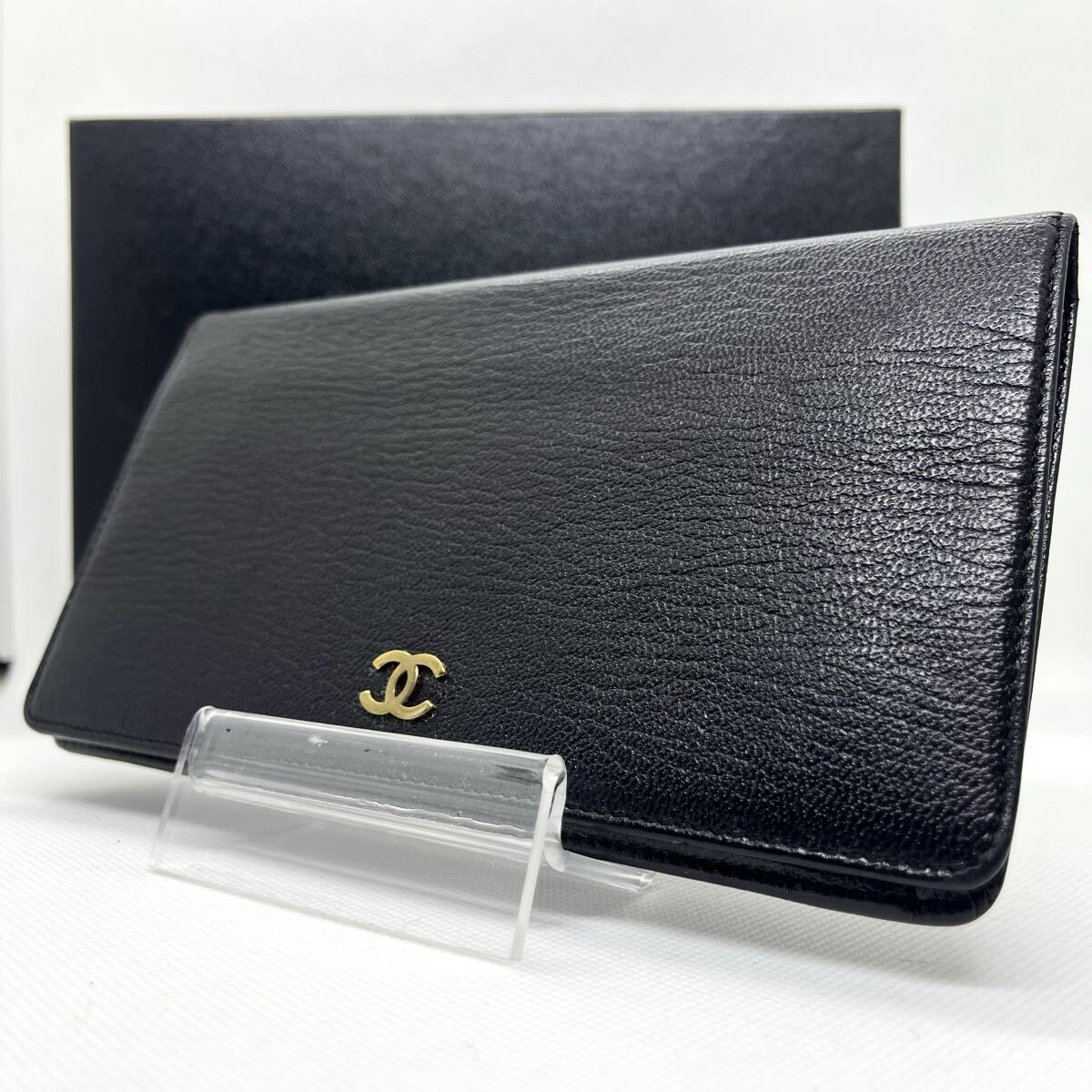 > ●美品 CHANEL シャネル ココマーク 長財布 二つ折り財布 黒 ブラック 金具 ゴールド ロゴ 本革 レザー ビジネス メンズ コインケース有り