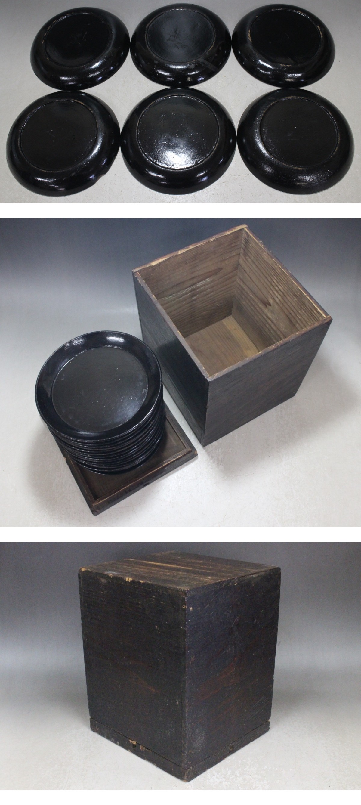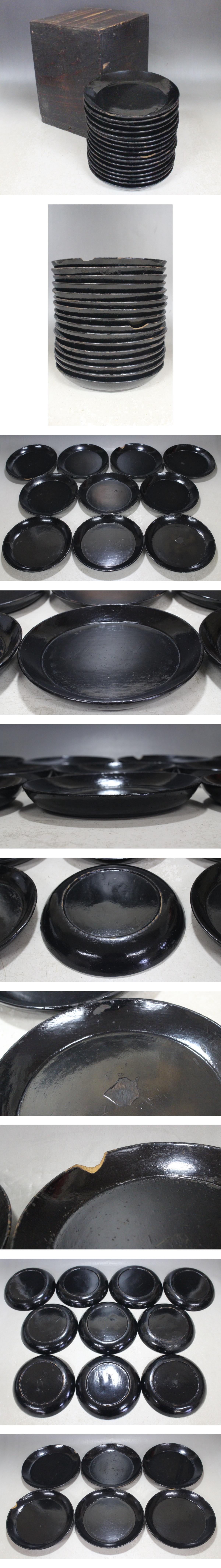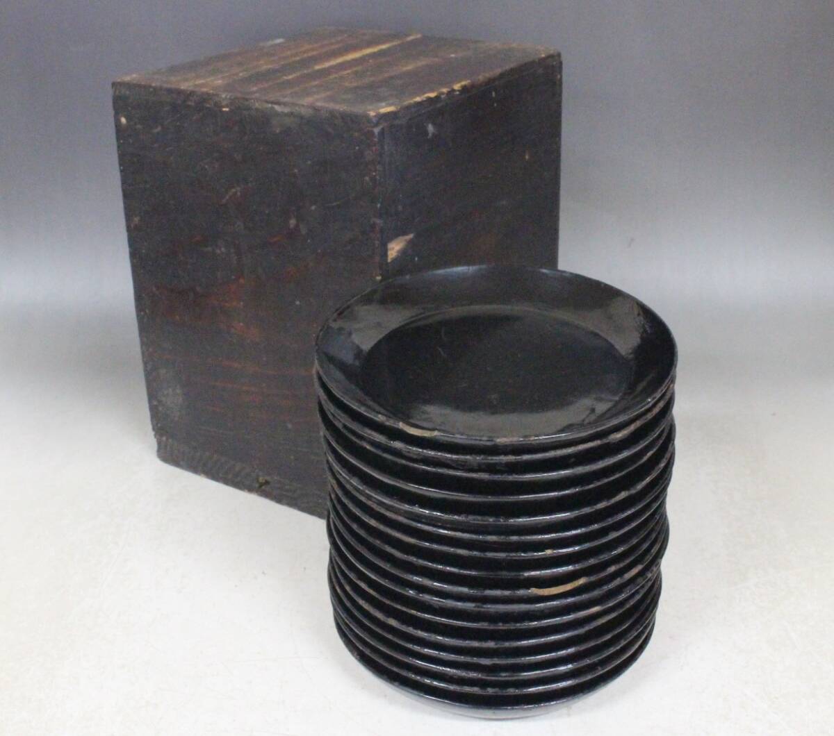 - 黒漆塗 木皿 16客 江戸時代頃 漆器工芸品 チ51