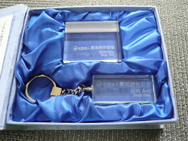 - ■社団法人 葛城納税協会 60th Anv,■ガラス製 フォトスタンド&キーホルダーセット■非売品■箱もあります(ダメージあり)■