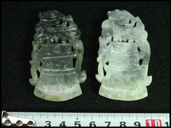 - 【金閣】中国美術 砡石 刻 提げ物 装飾 根付 一対 旧家蔵出 送料無料(XA843)