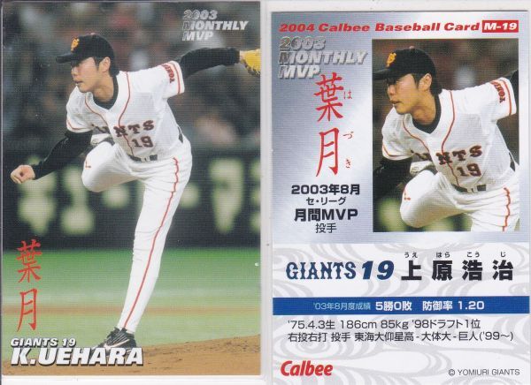 > ●2004カルビー 【上原 浩治】 月間MVP CARD No.M-19:巨人 R6