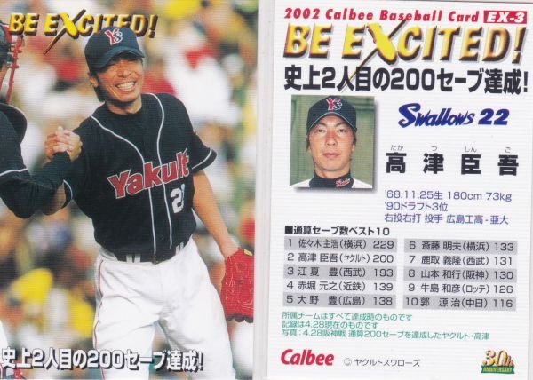 - ●2002カルビー【高津 臣吾】 BE EXCITED! No.EX-3:ヤクルト R3