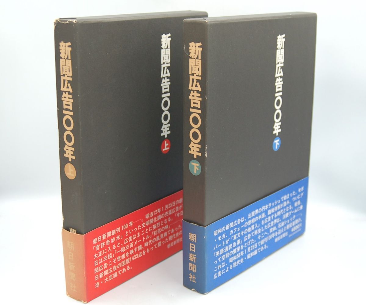 - 『新聞広告100年』上下揃 朝日新聞社 昭和53年初版函帯