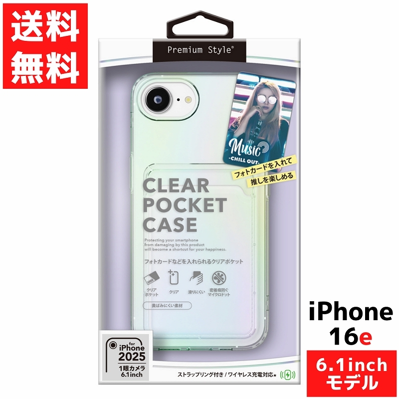 > iPhone 16e 用 クリアポケットケース オーロラ ストラップホール付き アイフォンケース フォトカードを入れて楽しむ