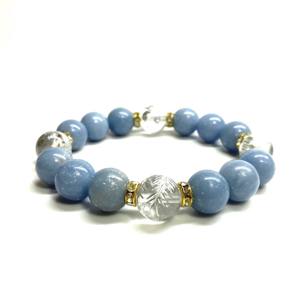 - 四神獣銀彫水晶×エンジェライト 12mm パワーストーン ブレスレット天然石 青龍 白虎 玄武 朱雀 運気上昇 お守り 金運 四神獸 四神相応 G