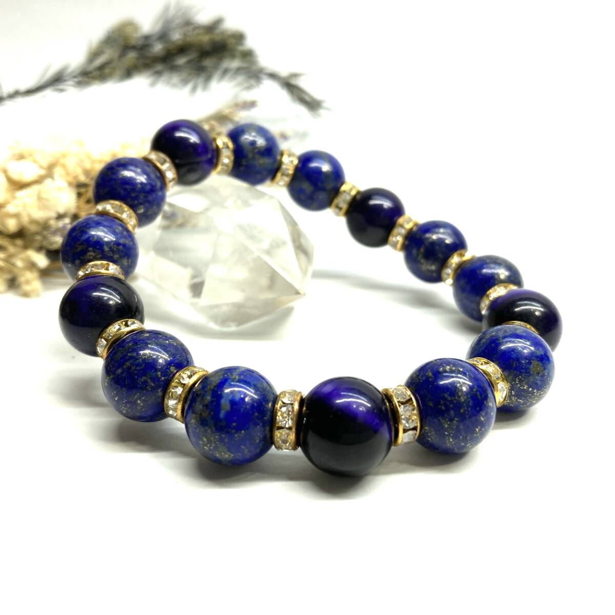 > ラピスラズリ&パープルタイガーアイ パワーストーン ブレスレット 天然石ブレス (ゴールド) 12mm 幸運 開運 メンズ 男性