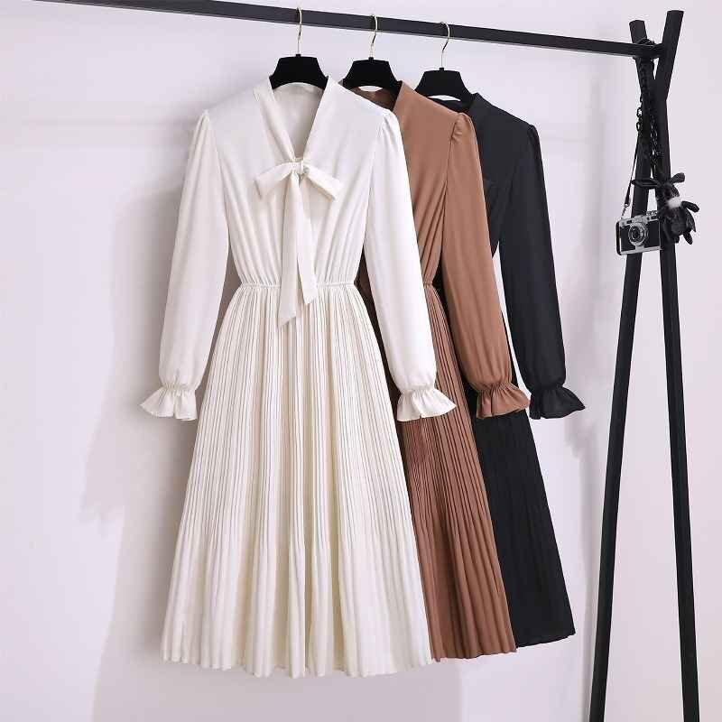 - 全3色 長袖ワンピース フリル 切り替え スリム 着痩せ 無地 【大きいサイズあり】 2XL ブラック