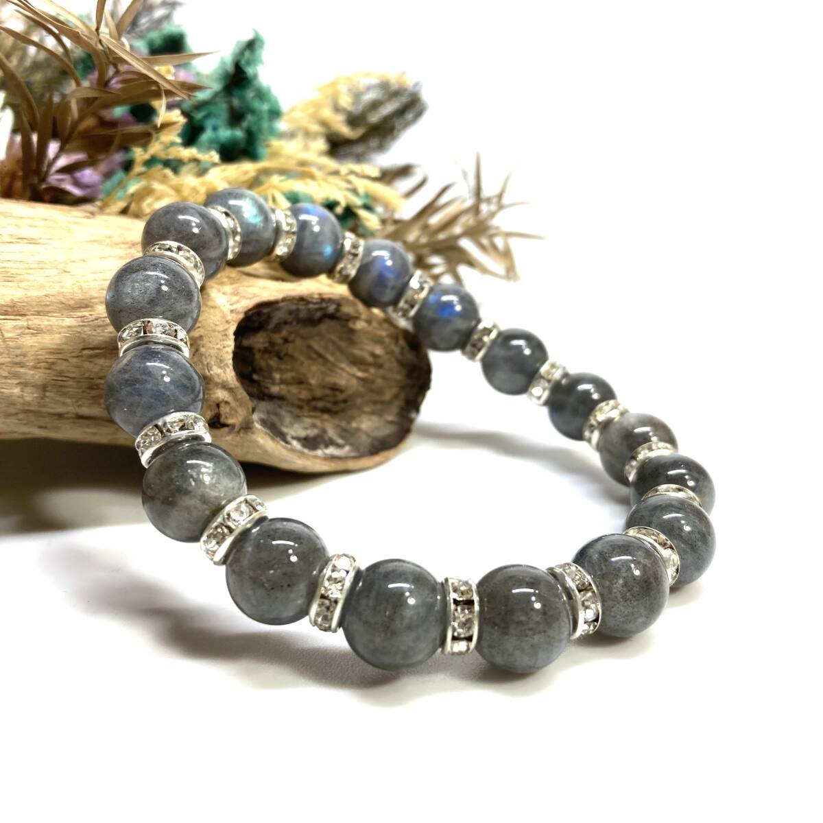 - ラブラドライト パワーストーン ブレスレット 10mm (シルバー) 天然石ブレス 数珠ブレス メンズ・レディース 男性 女性 幸運 開運 浄化 ☆