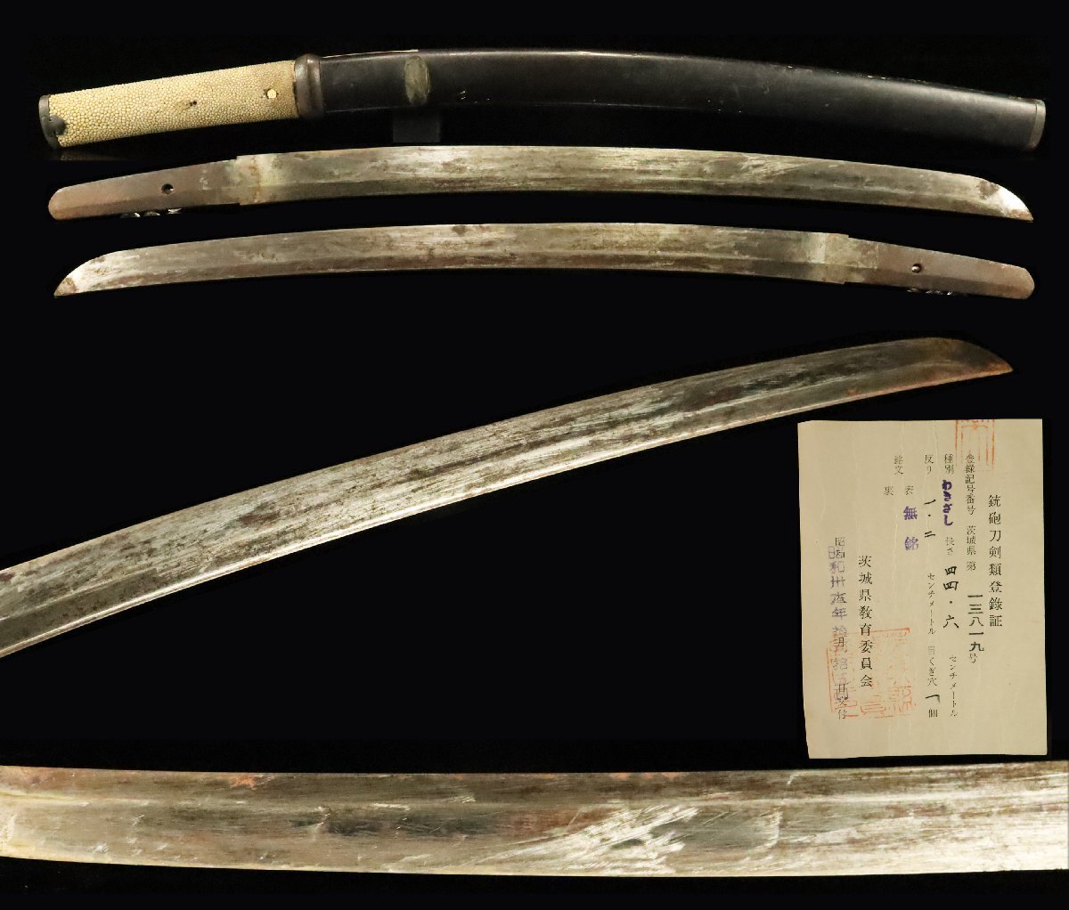 ![【ASAHI】旧家蔵出品 鉄地金象嵌一作金具拵え入りの脇差 無銘 44.6cm 黒塗鞘[78195qy]拍卖](http://yahooimg2.ymibuy.cn/i/auctions.c.yimg.jp/images.auctions.yahoo.co.jp/image/dr000/auc0110/user/0a29af6b5dc83a660c684b014424dd4c42c50c8219a4995f4cdee80b9cd1e996/i-img1200x1022-17608650212639lvu1hl33.jpg)